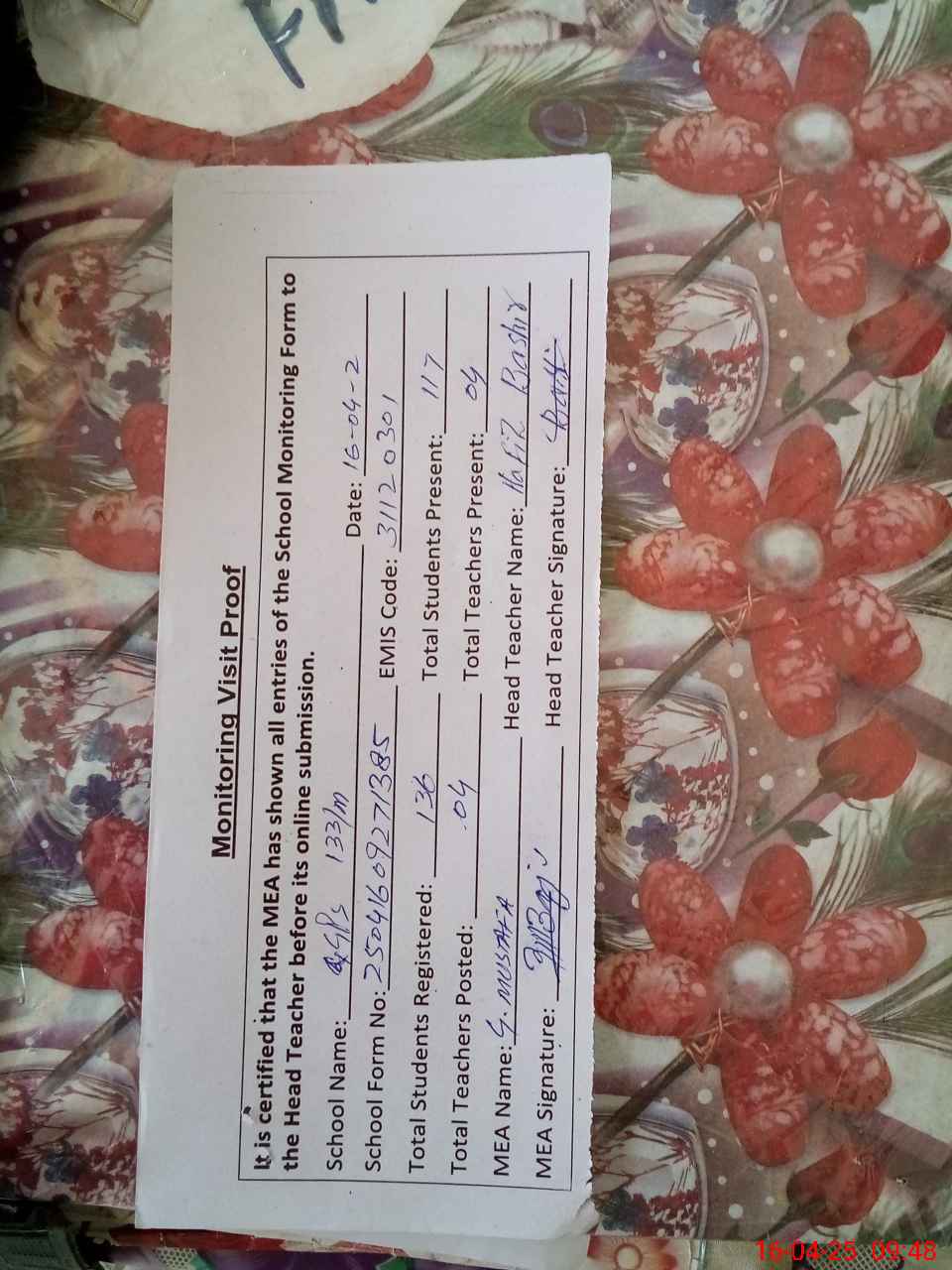| EMIS Code: 31120301 | Name of School: GPS CHAK NO 133/M | |||