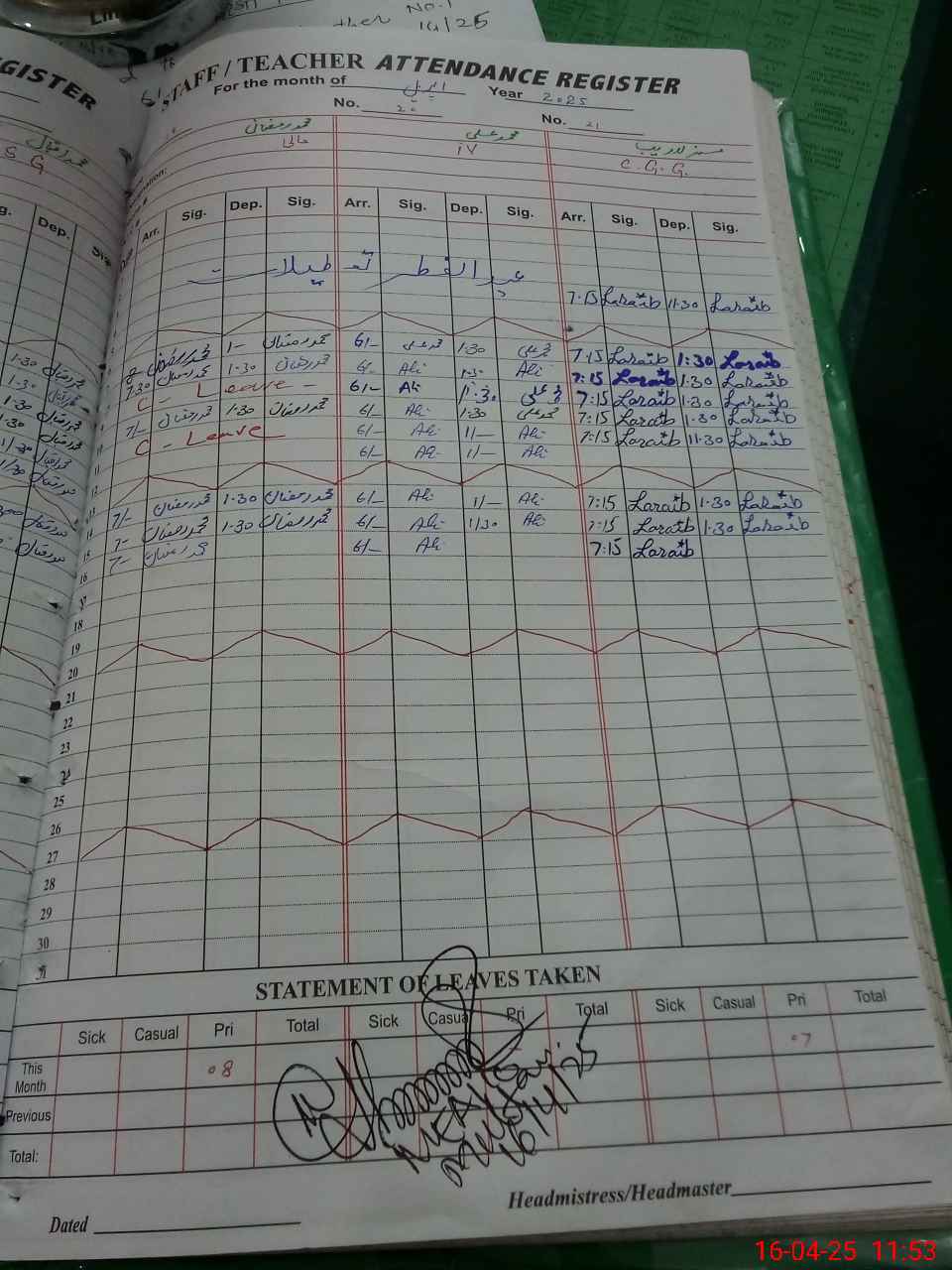 | Leave | Duty | Absent | Maternity | Medical | Ex- Pak |