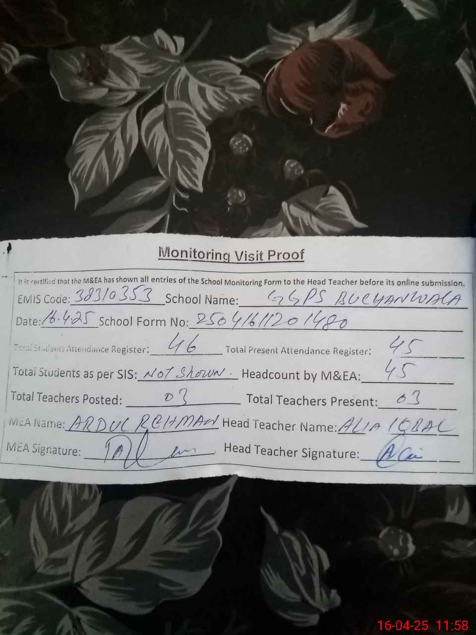 | EMIS Code: 38310353 | Name of School: GGPS BUCHAN WALA | |||