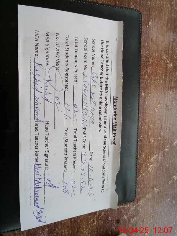 | EMIS Code: 31310252 | Name of School: GPS KOT DAYA | |||