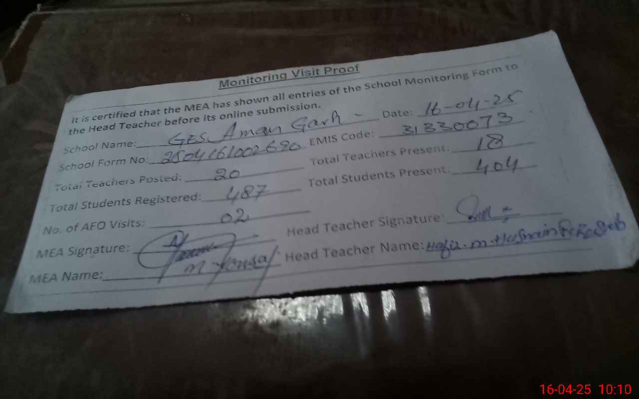 | EMIS Code: 31330073 | Name of School: GES AMAN GARH | |||