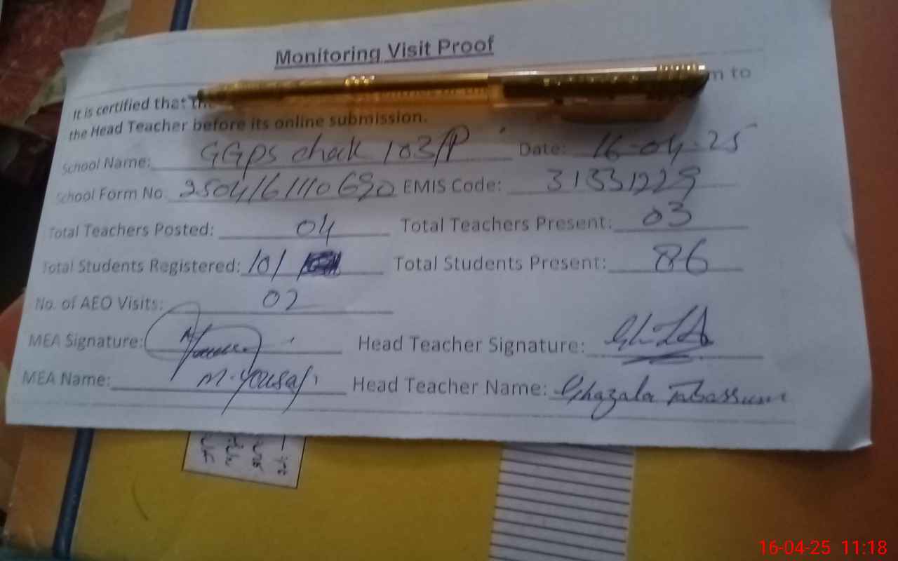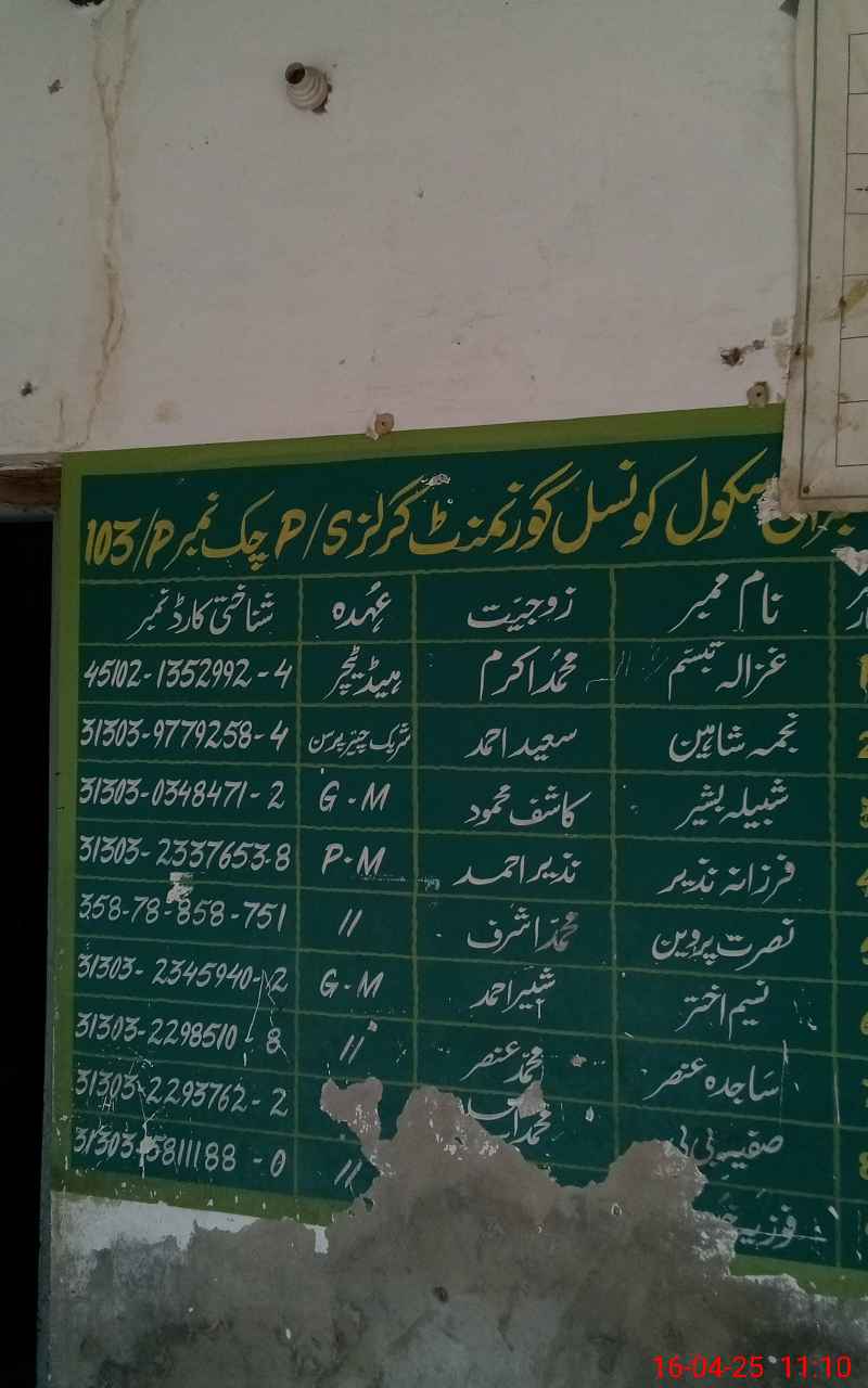 | EMIS Code: 31331229 | Name of School: GGPS CHAK NO. 103/P | |||