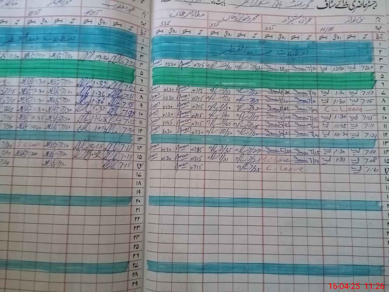 | CNIC | Full Name | Designation | R/C | Absence During Last Calender Month |