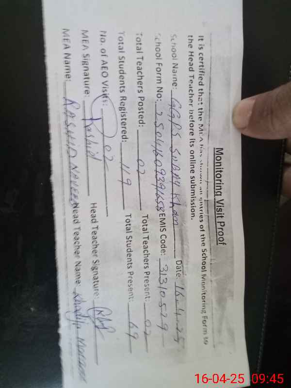 | EMIS Code: 31310529 | Name of School: GGPS SUBAY KHAN | |||