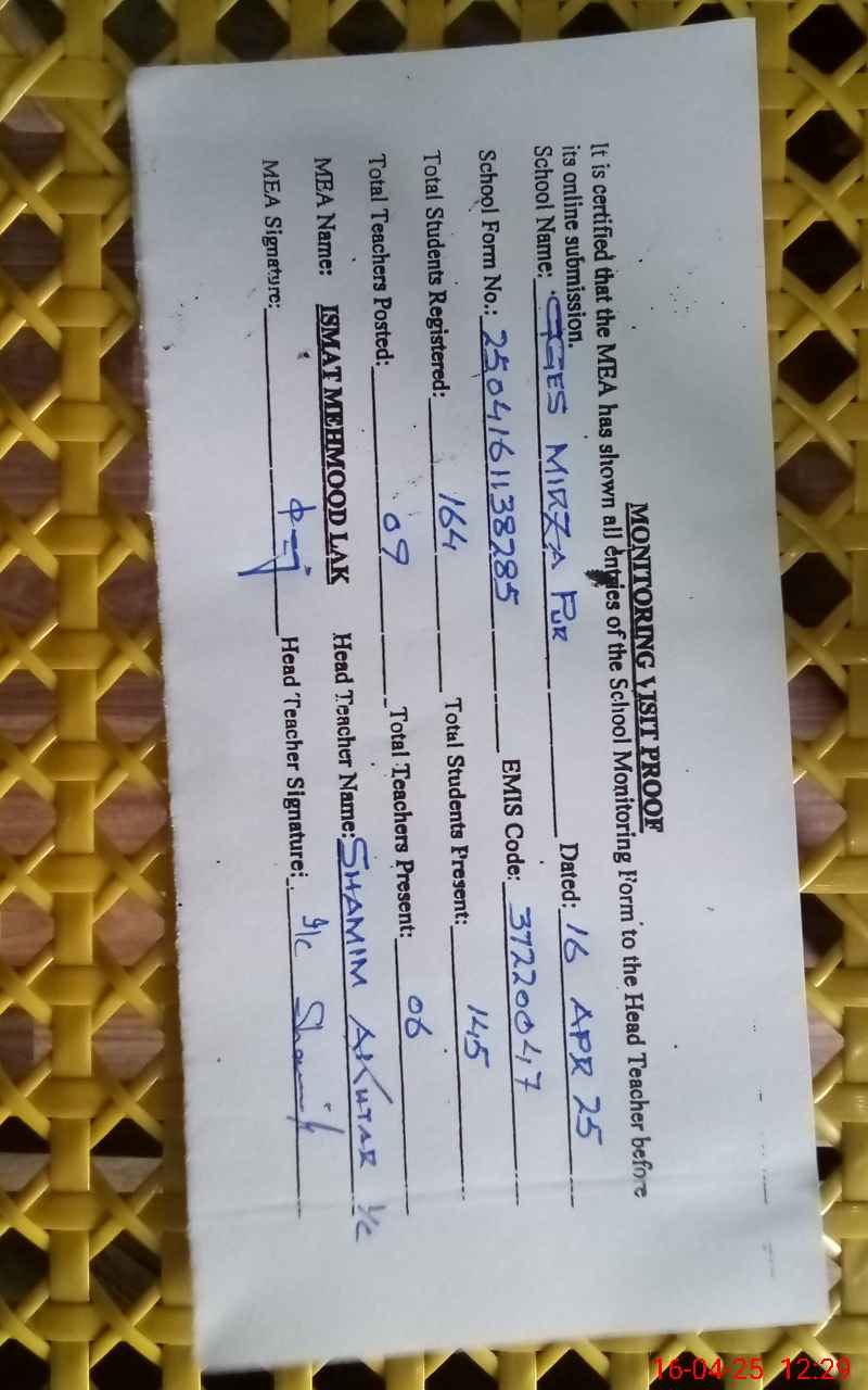 | EMIS Code: 37220047 | Name of School: GGES MIRZA PUR | |||