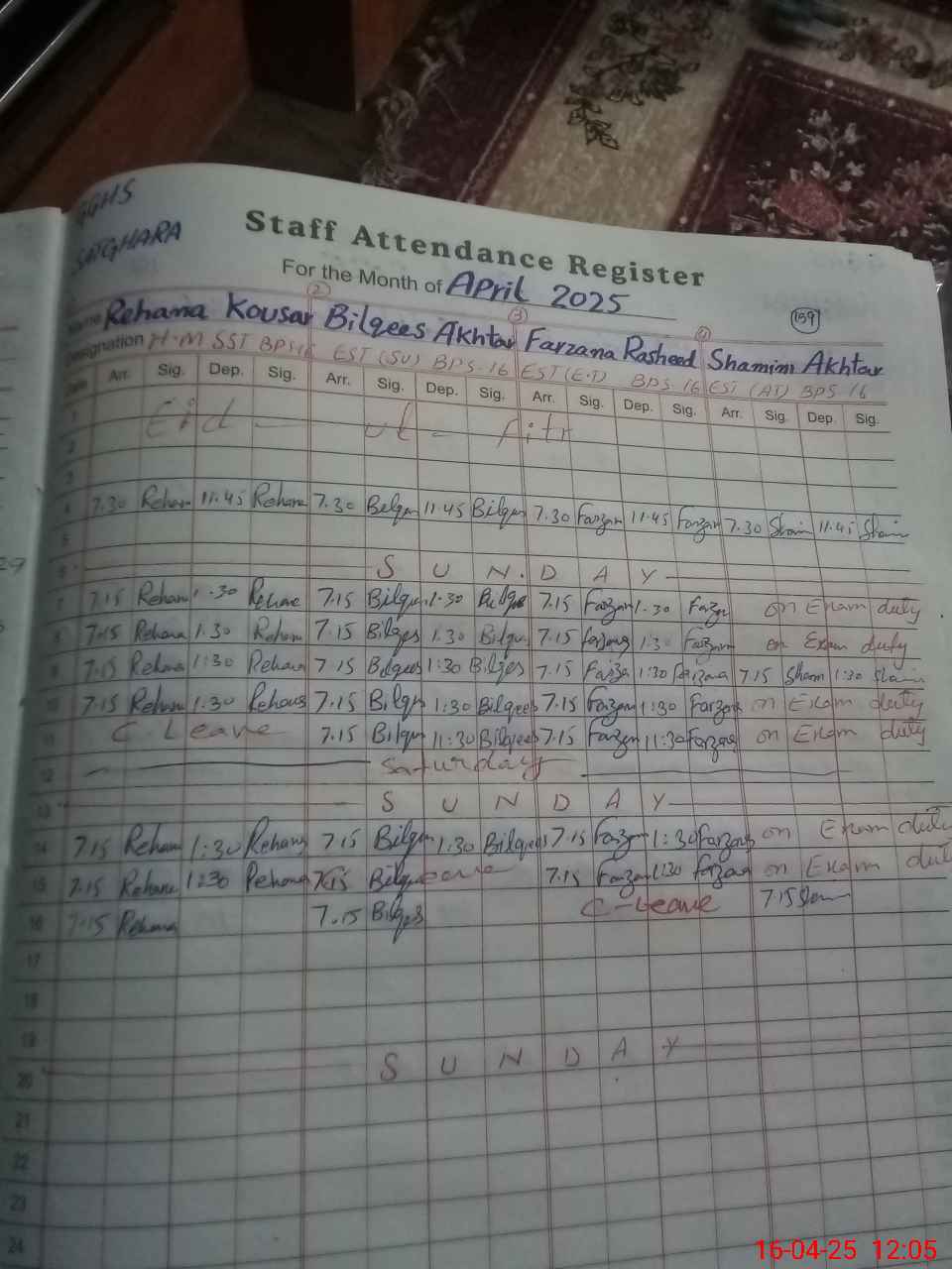 | Leave | Duty | Absent | Maternity | Medical | Ex- Pak |