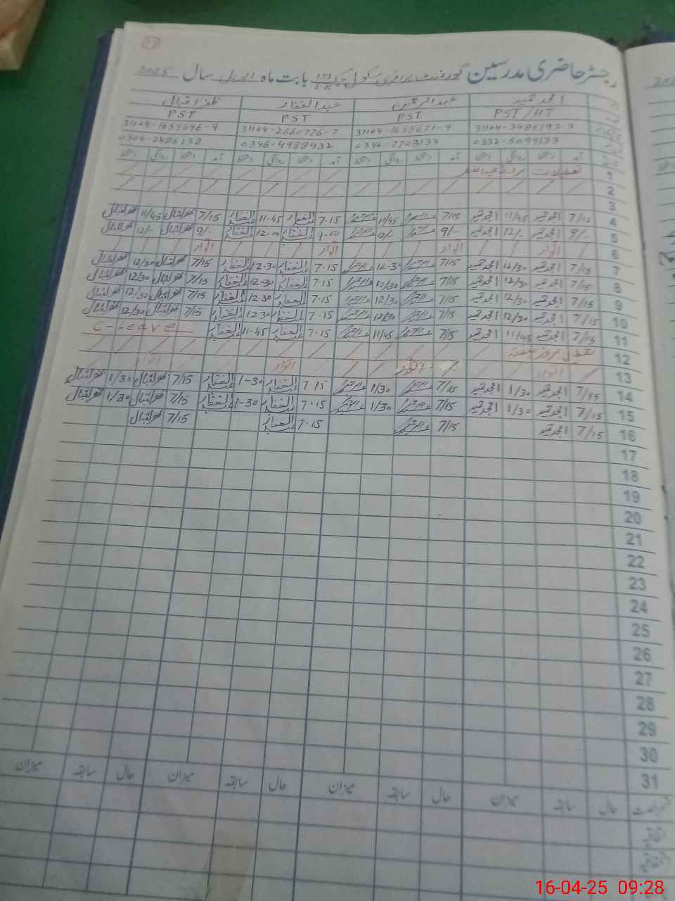 | Name: Am**** Ha**** Designation: (School Headmaster's/Headmistress's) PST Phone/Cell Number: 03**** |