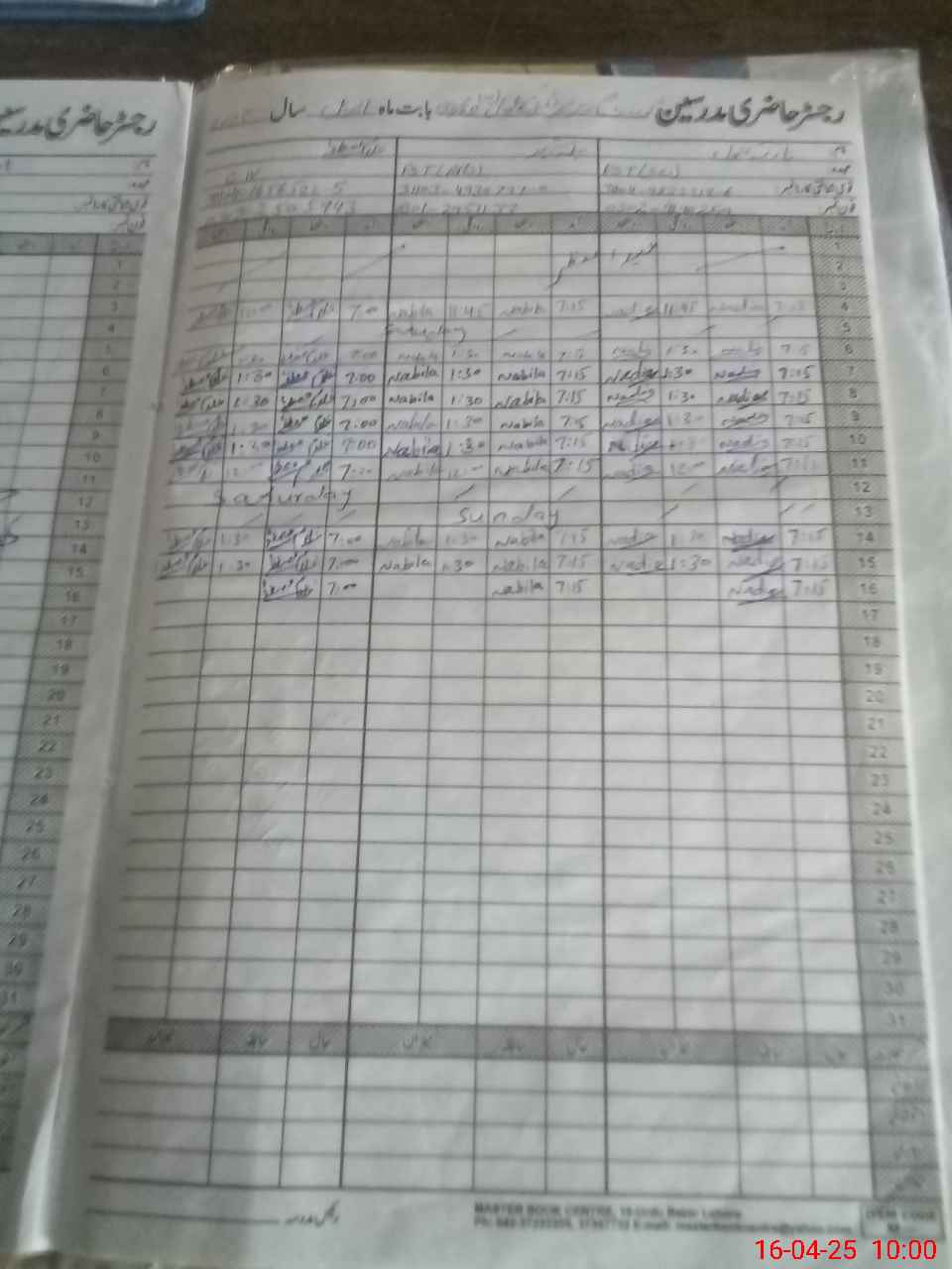 | CNIC | Full Name | Designation | R/C | Absence During Last Calender Month |