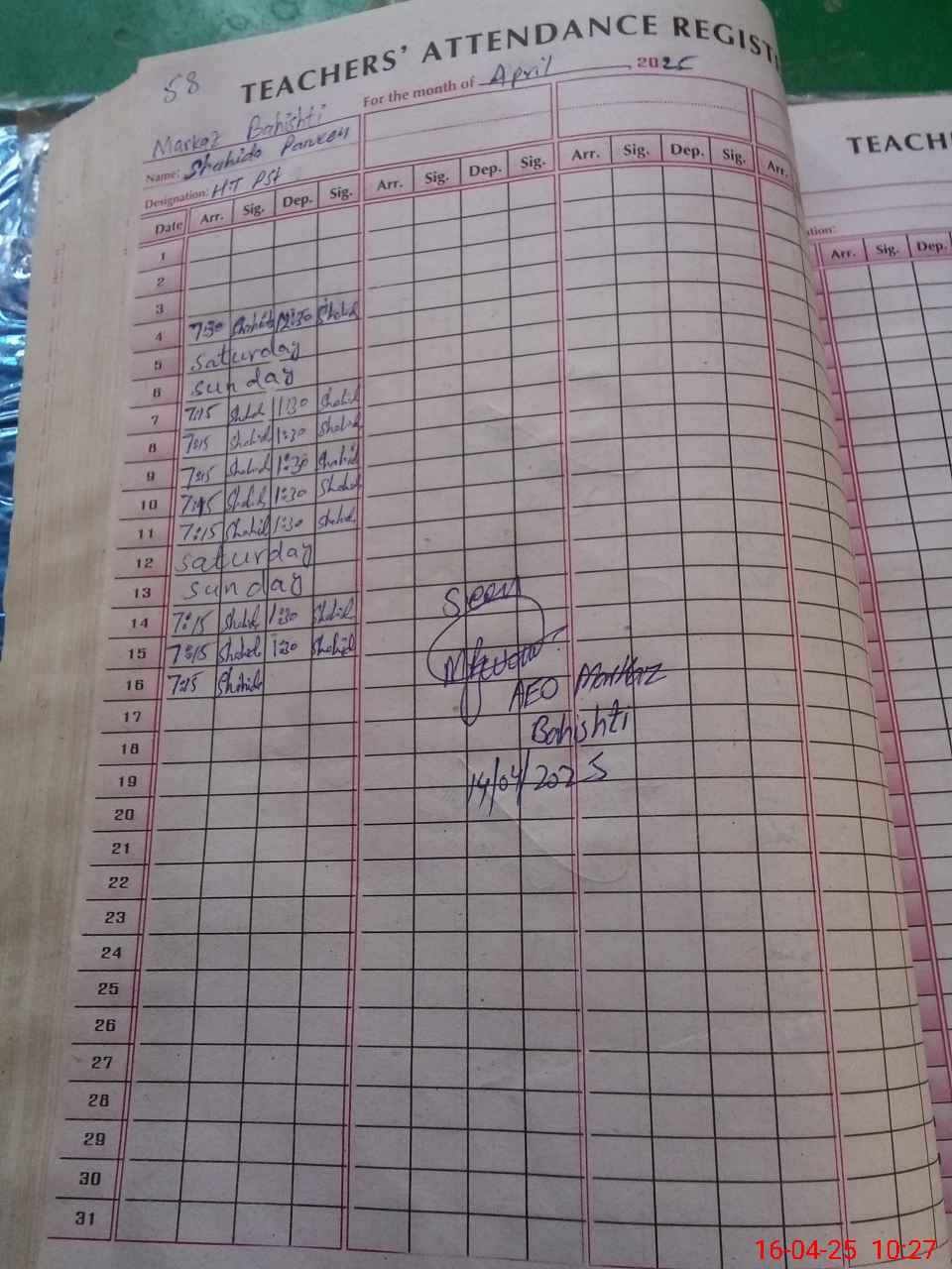 | Name: Sh**** Pa**** Designation: (School Headmaster's/Headmistress's) Pst Phone/Cell Number: 03**** |