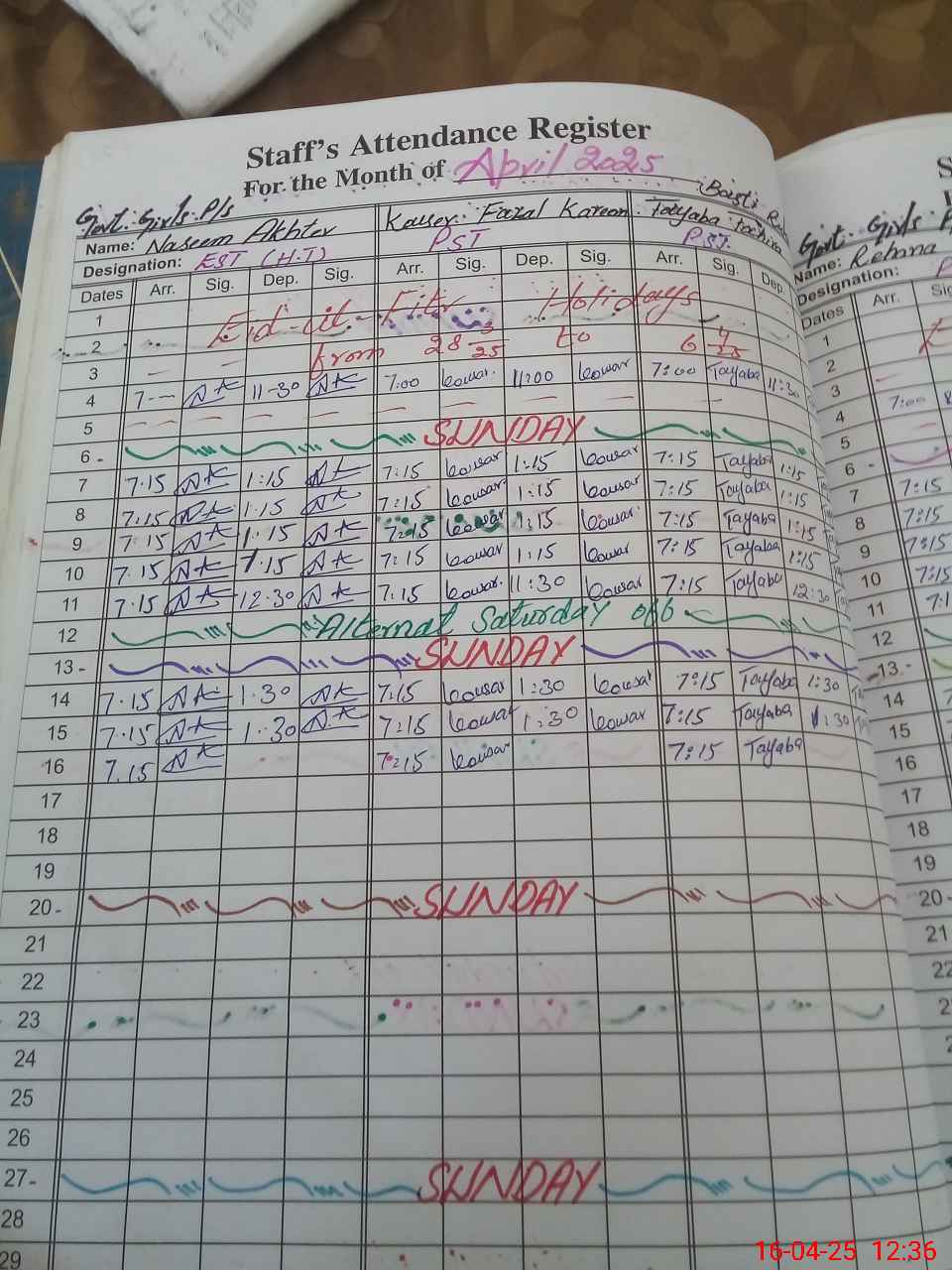 | CNIC | Full Name | Designation | R/C | Absence During Last Calender Month |