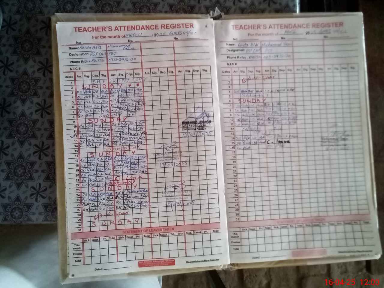 | Name: Ab**** Bi**** Designation: (School Headmaster's/Headmistress's) ESE (Arts) Phone/Cell Number: 03**** |