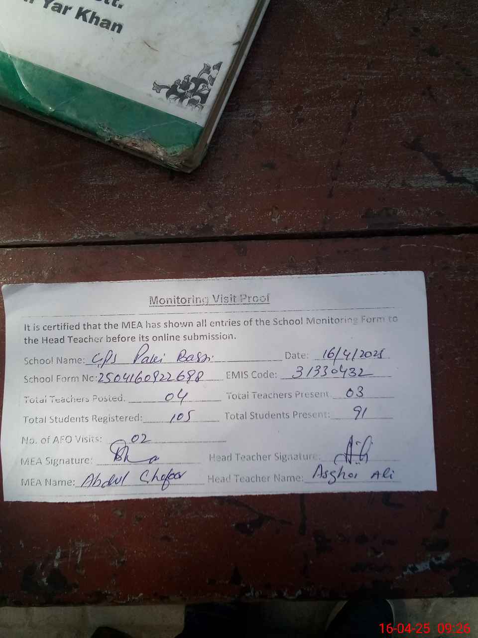 | EMIS Code: 31330432 | Name of School: GPS PAKKI BASTI | |||