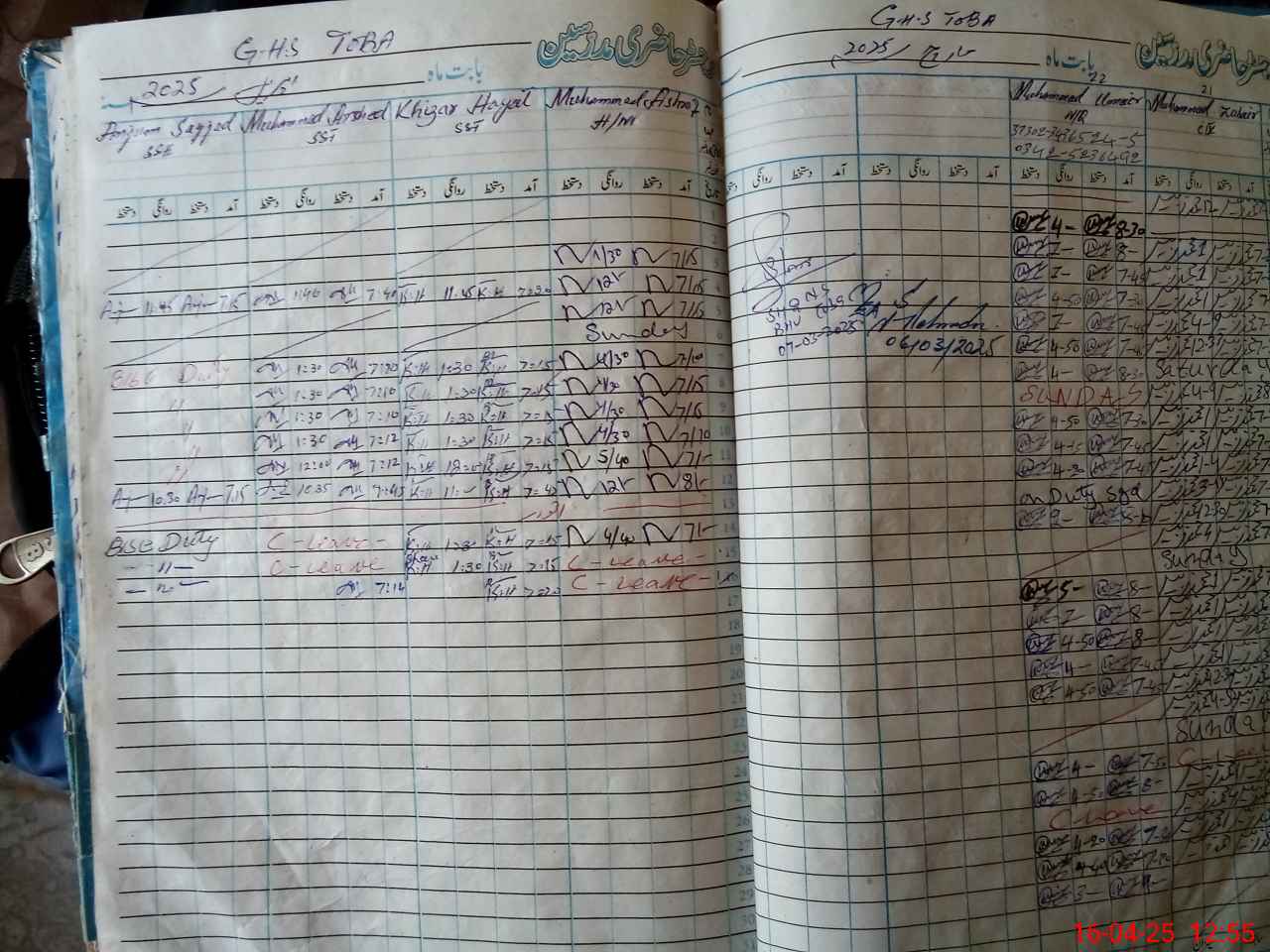 | Leave | Duty | Absent | Maternity | Medical | Ex- Pak |