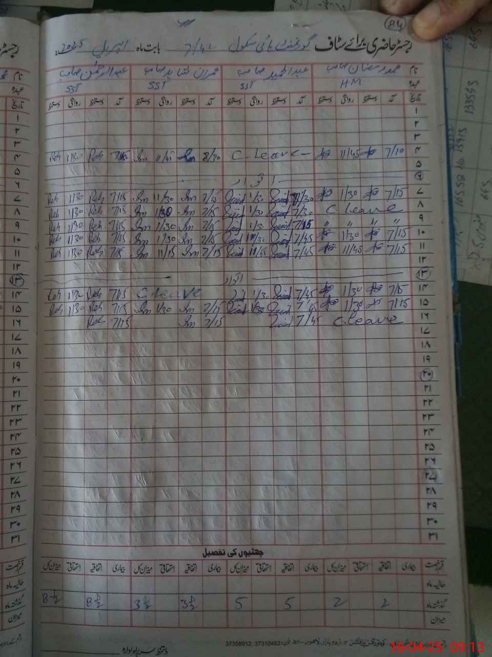 | CNIC | Full Name | Designation | R/C | Absence During Last Calender Month |