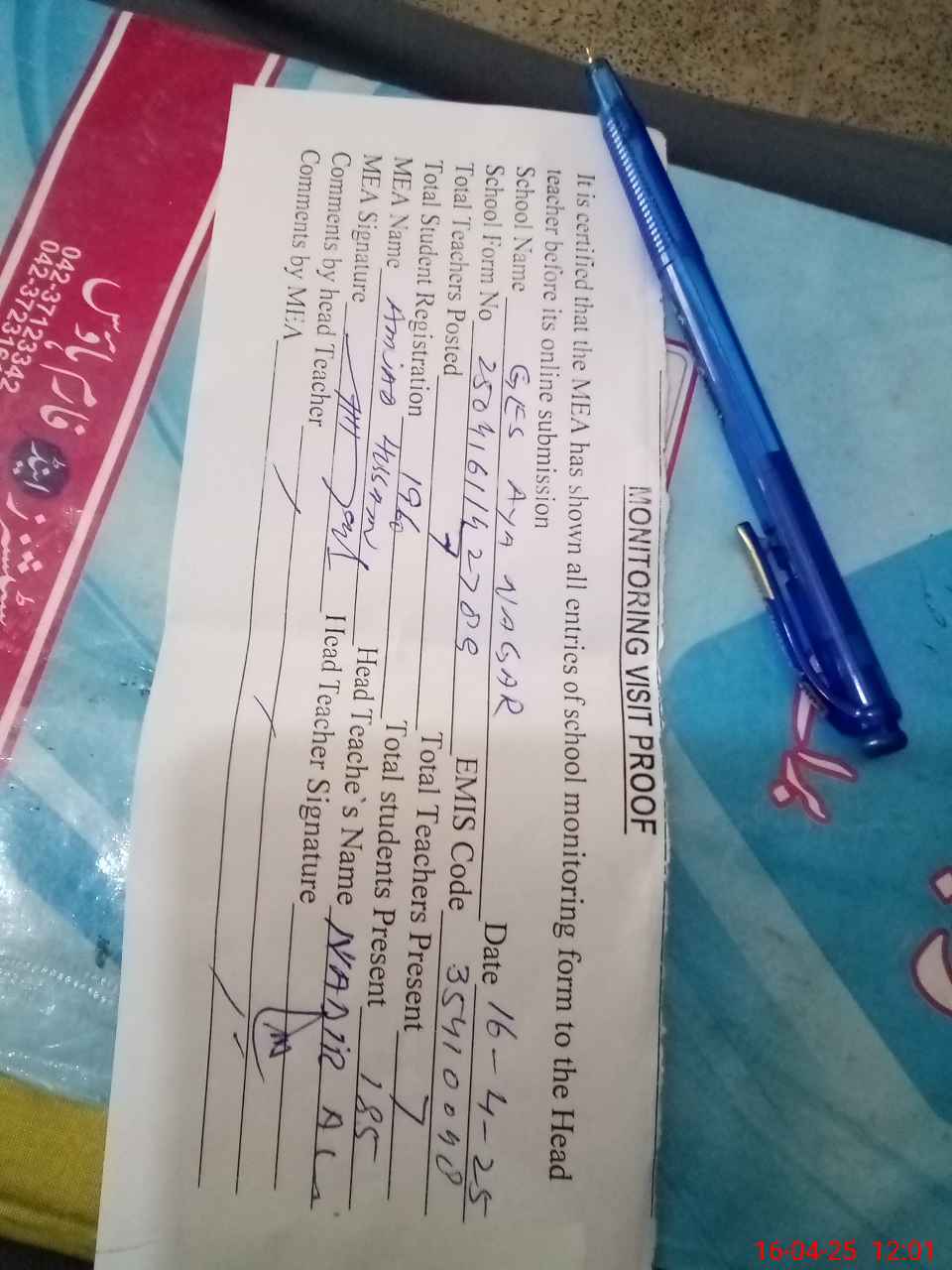 | EMIS Code: 35410048 | Name of School: GES AYYA NAGER KALAN | |||