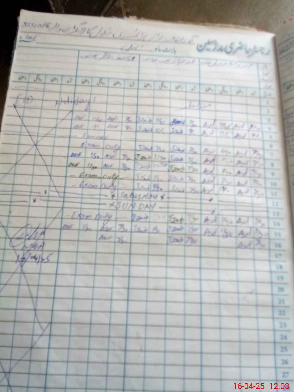 | CNIC | Full Name | Designation | R/C | Absence During Last Calender Month |