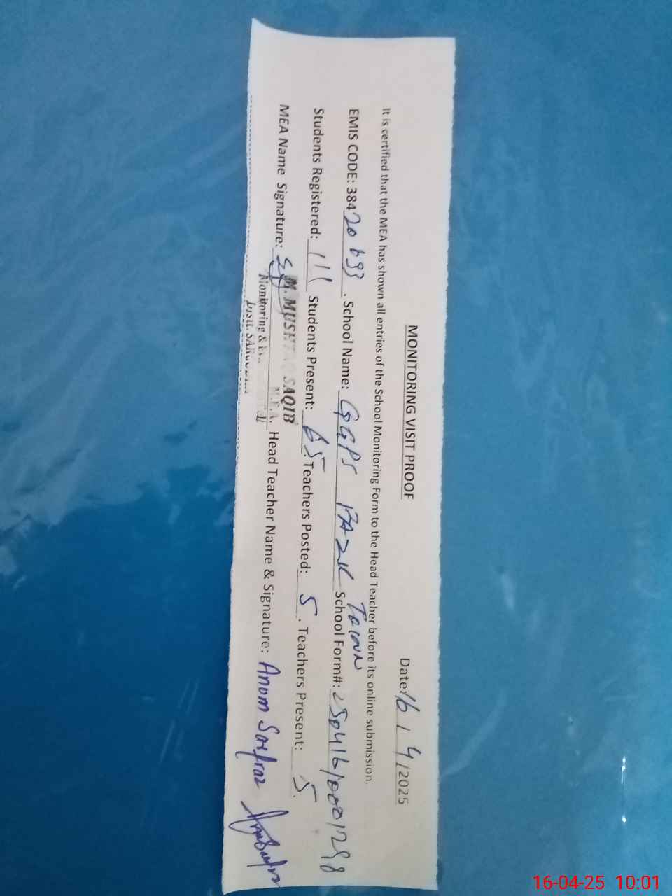 | EMIS Code: 38420633 | Name of School: GGPS FAZIL TOWN | |||