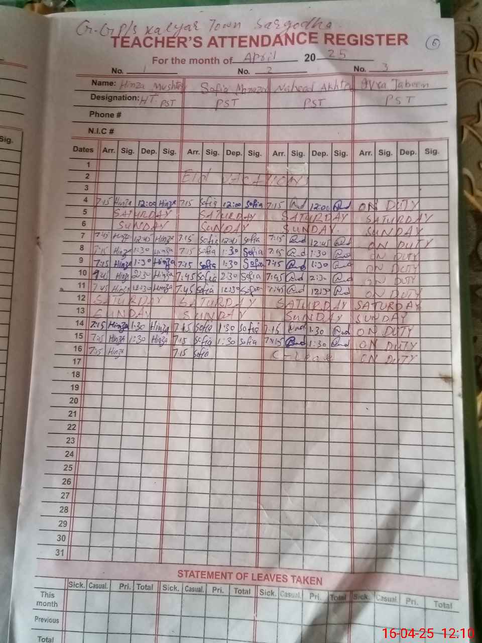 | 38**** | Iq**** Ja**** | PST | Regular | 0 | 0 | 0 | 0 | 0 | 0 | 0 | 0 | 0 | Exam Duty |