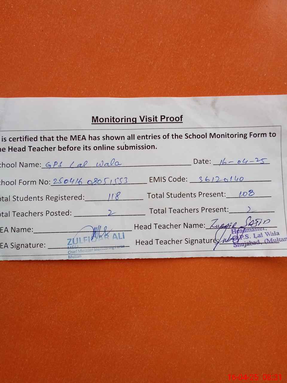| EMIS Code: 36120140 | Name of School: GPS LAL WALA SHUJAHABAD | |||