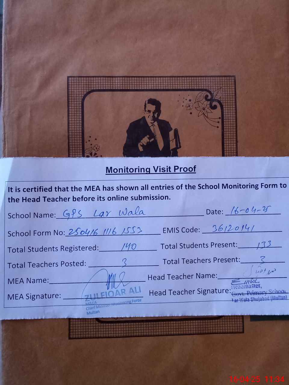| EMIS Code: 36120141 | Name of School: GPS LAR WALA SHUJA ABAD | |||