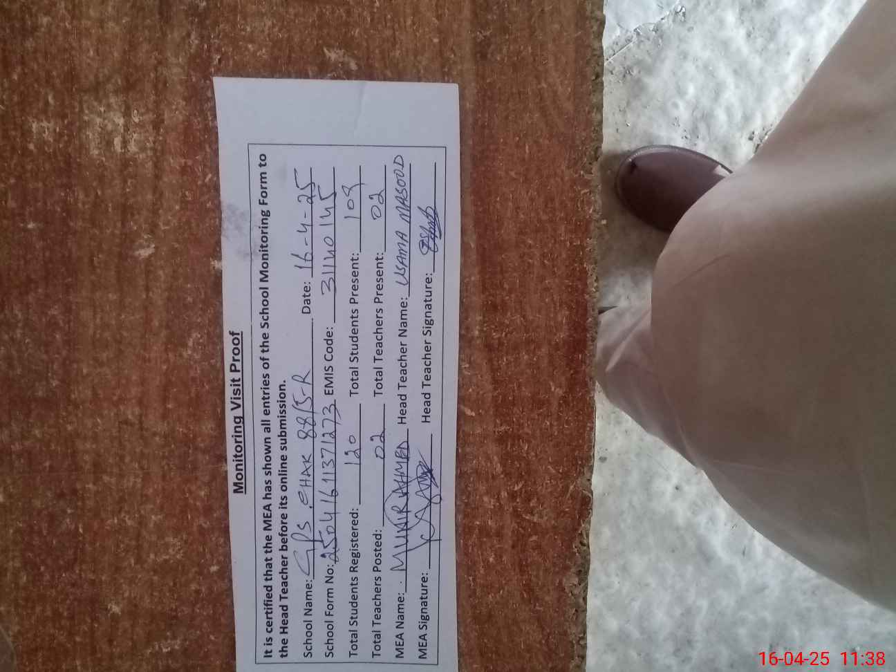 | EMIS Code: 31140145 | Name of School: GPS CHAK NO 88/5-R | |||