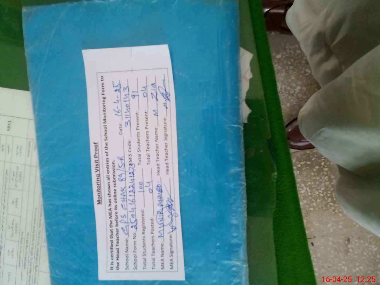 | Attendance Register | Head Teacher | MEA with School | Visit Proof |