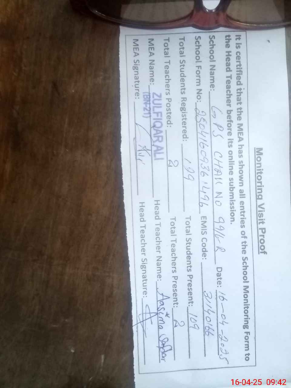 | EMIS Code: 31140166 | Name of School: GPS CHAK NO.99/6-R | |||
