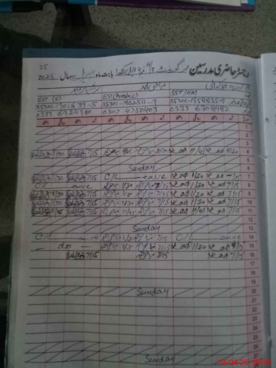 | Name: Sh**** Ah**** Designation: (School Headmaster's/Headmistress's) HM OPS Phone/Cell Number: 03**** |