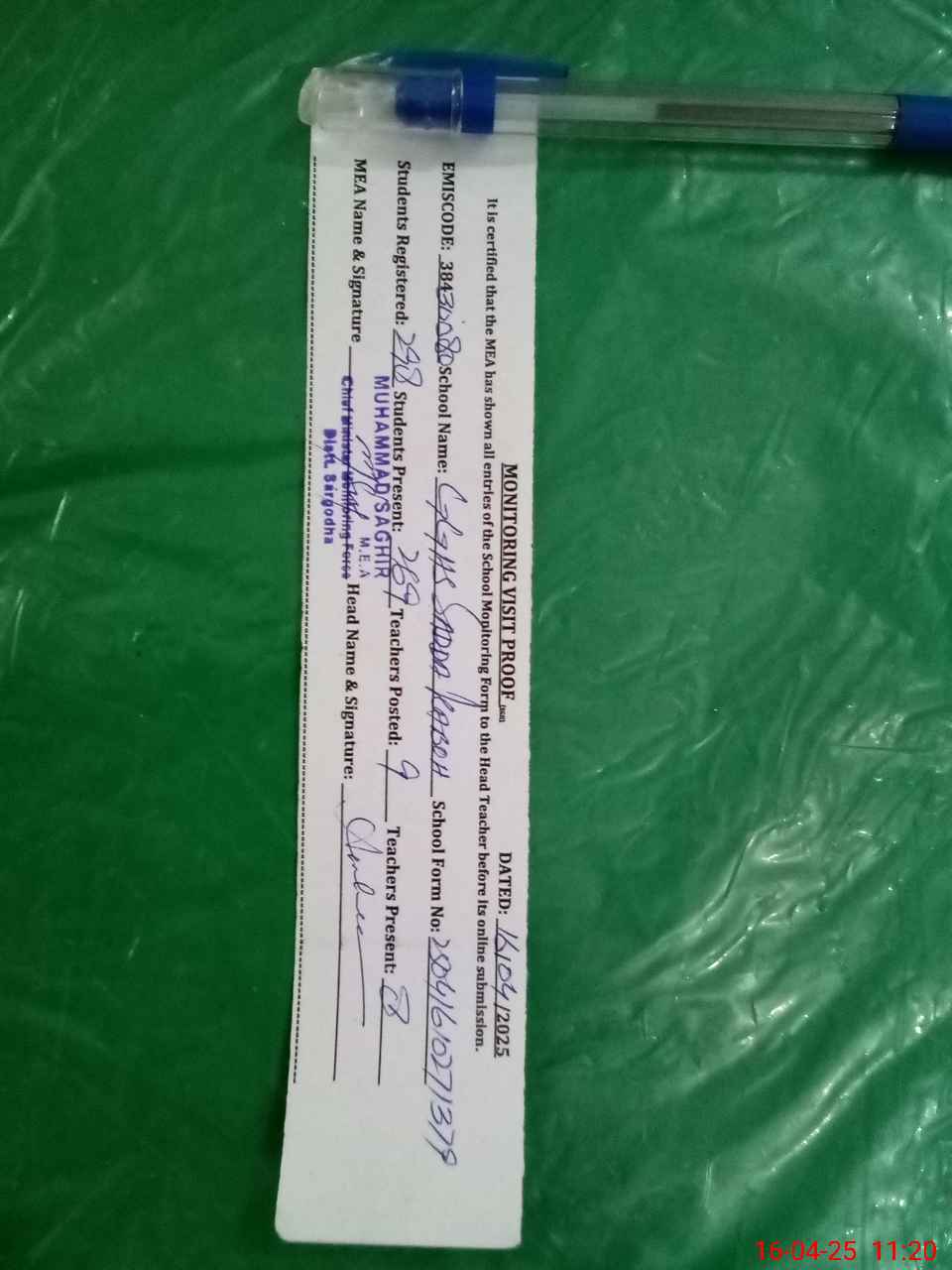 | EMIS Code: 38430080 | Name of School: GGHS SADA KAMBOH | |||