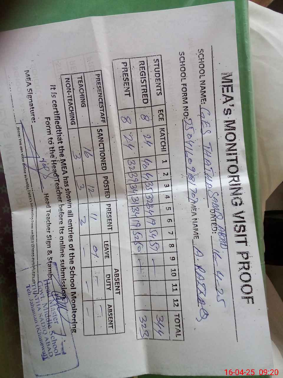 | EMIS Code: 36440088 | Name of School: GES THATHA SADIQ ABAD, JAHANIAN | |||