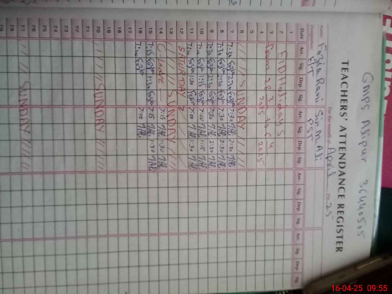 | Name: FO**** RA**** Designation: (School Headmaster's/Headmistress's) PST Phone/Cell Number: 03**** |