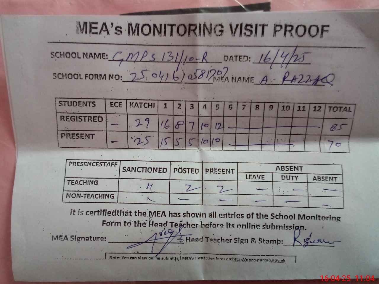 | EMIS Code: 36440500 | Name of School: GMPS 131/10-R, JAHANIAN | |||