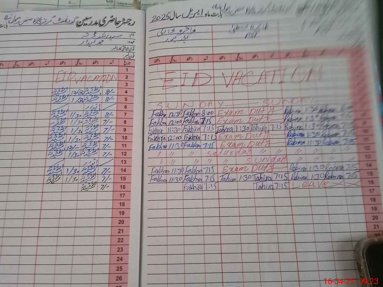 | Leave | Duty | Absent | Maternity | Medical | Ex- Pak |