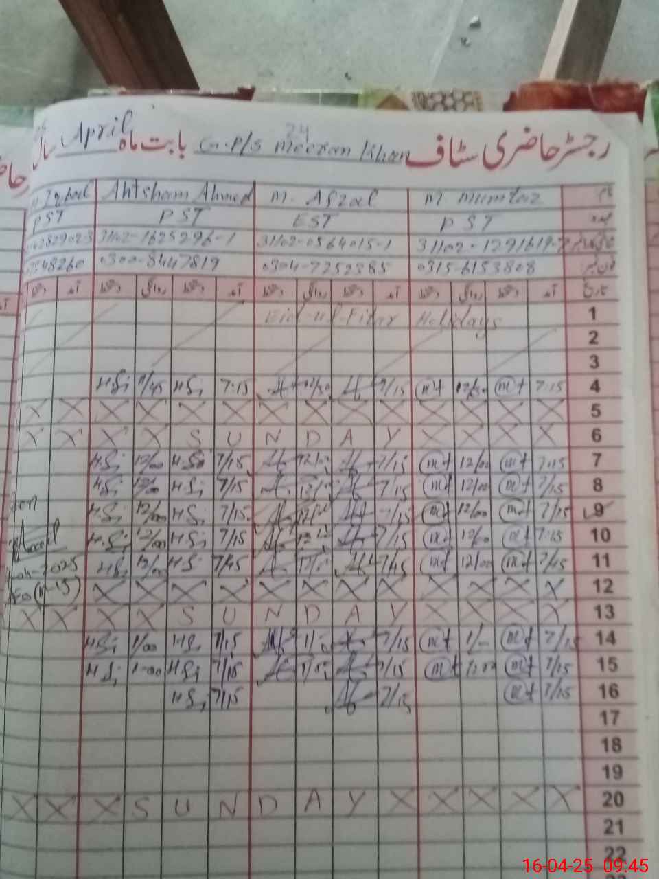 | CNIC | Full Name | Designation | R/C | Absence During Last Calender Month |