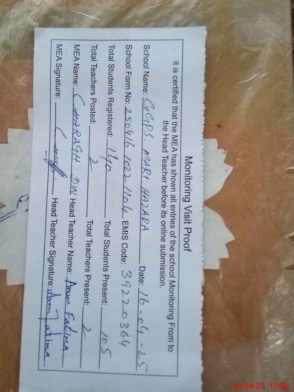 | EMIS Code: 39220364 | Name of School: GGPS MARI HAZARA | |||
