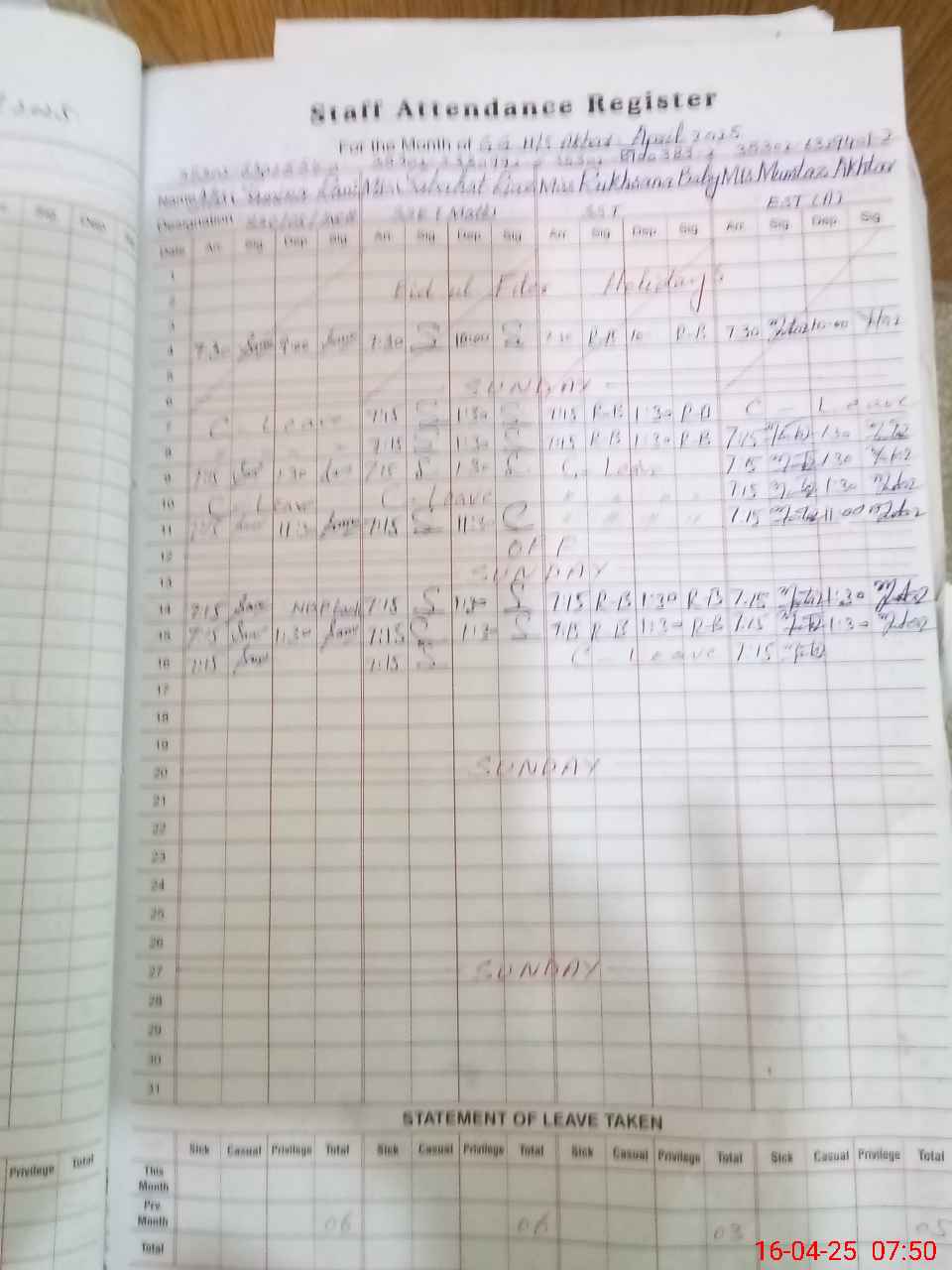 | 35**** | Ma**** Ba**** | PST | Regular | 0 | 0 | 0 | 0 | 0 | 0 | 0 | 0 | 0 | Casual |