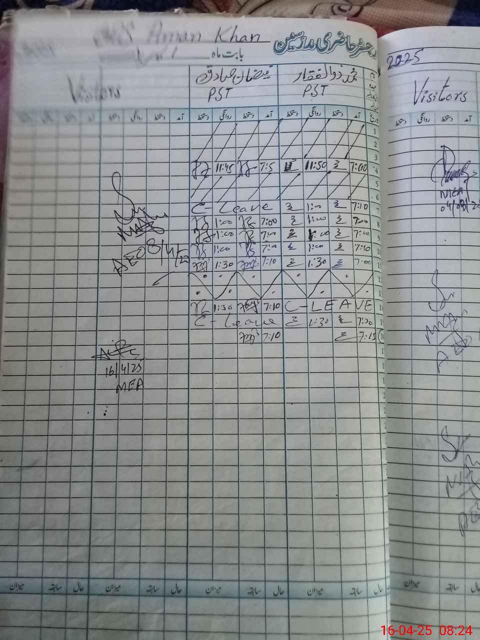 | CNIC | Full Name | Designation | R/C | Absence During Last Calender Month |
