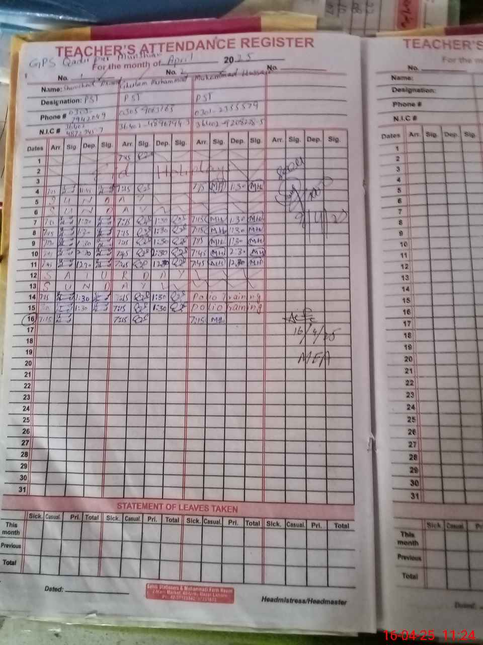 | Name: SH**** AH**** Designation: (School Headmaster's/Headmistress's) PST Phone/Cell Number: 03**** |