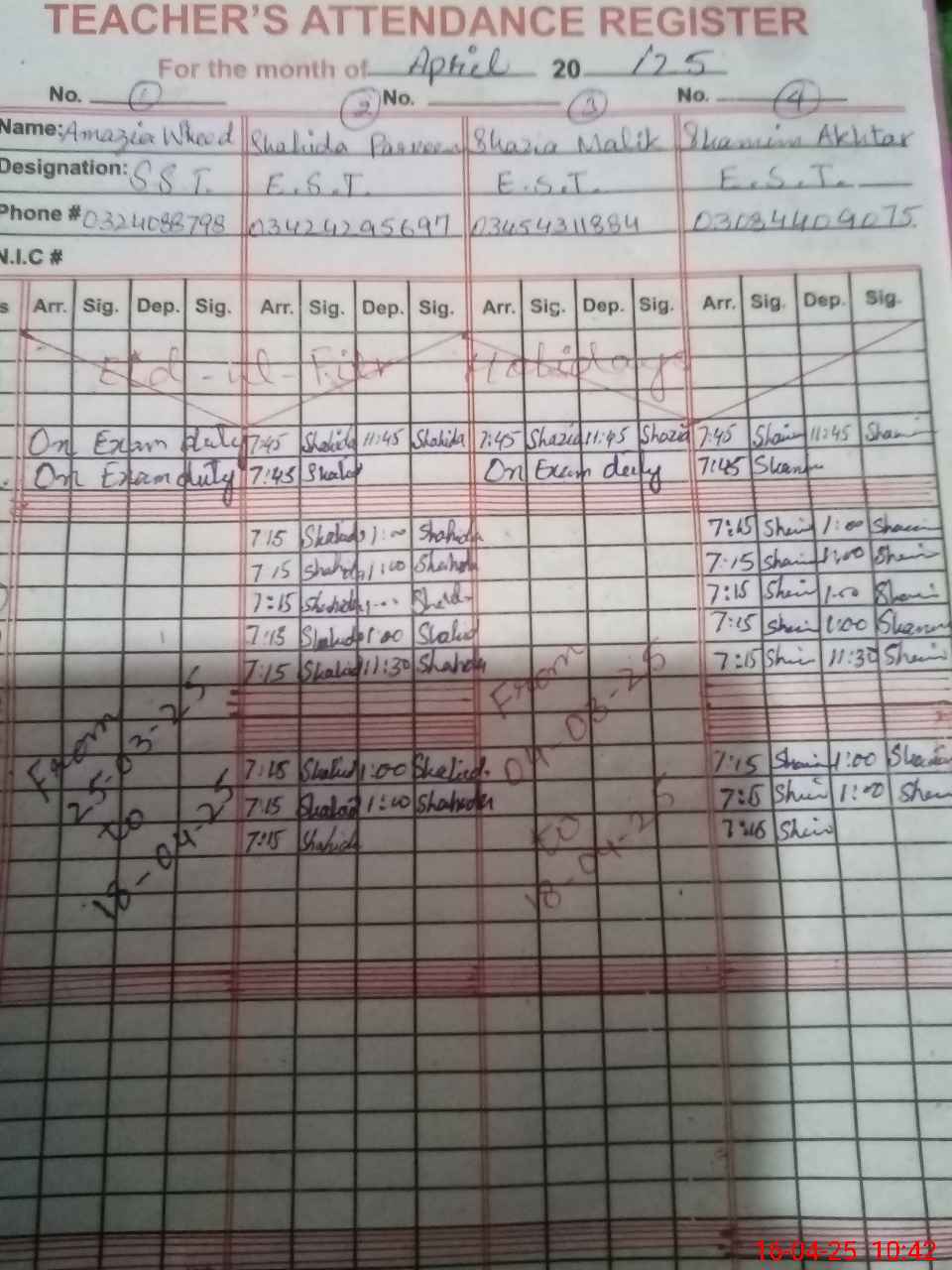 | 35**** | Am**** Wa**** | SST | Regular | 0 | 0 | 0 | 0 | 0 | 0 | 0 | 0 | 0 | Exam Duty |