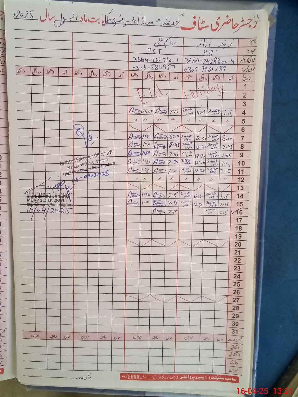 | Name: Za**** Na**** Designation: (School Headmaster's/Headmistress's) PST Phone/Cell Number: 03**** |