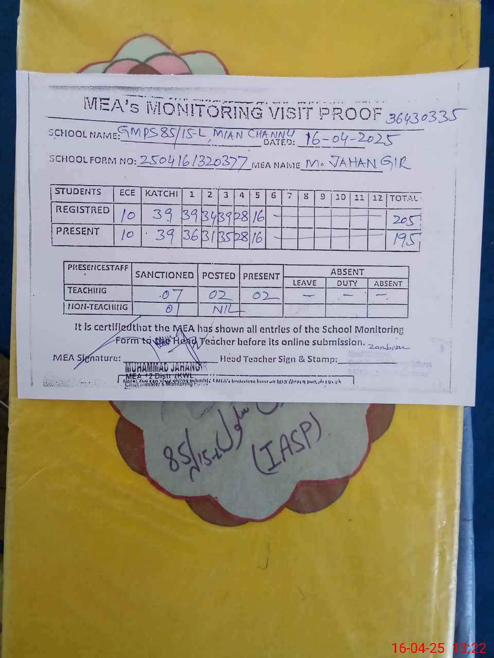 | EMIS Code: 36430335 | Name of School: GMPS 85/15-L, P/O 84/15-L, MIAN CHANNU | |||