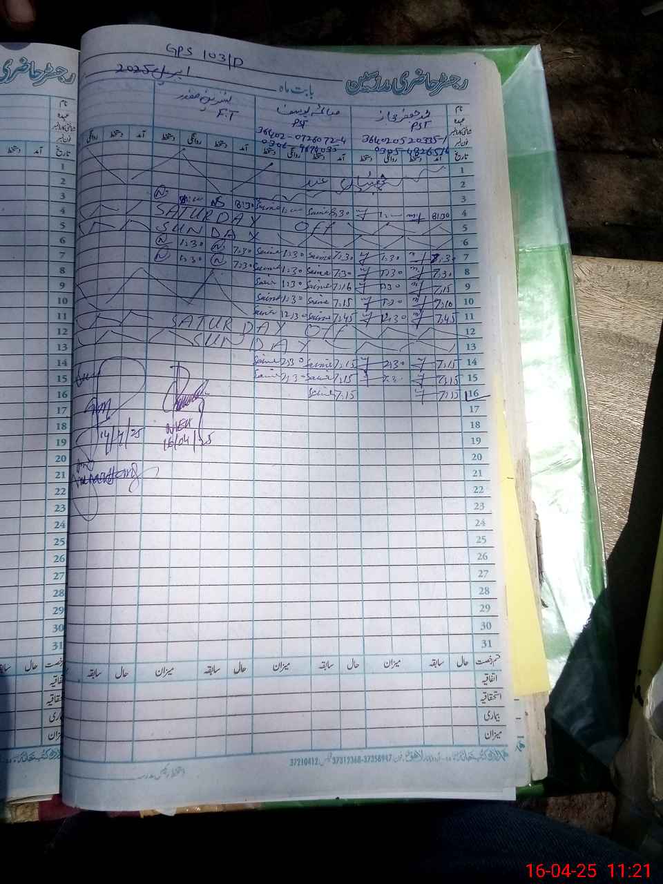 | CNIC | Full Name | Designation | R/C | Absence during last cal. month |