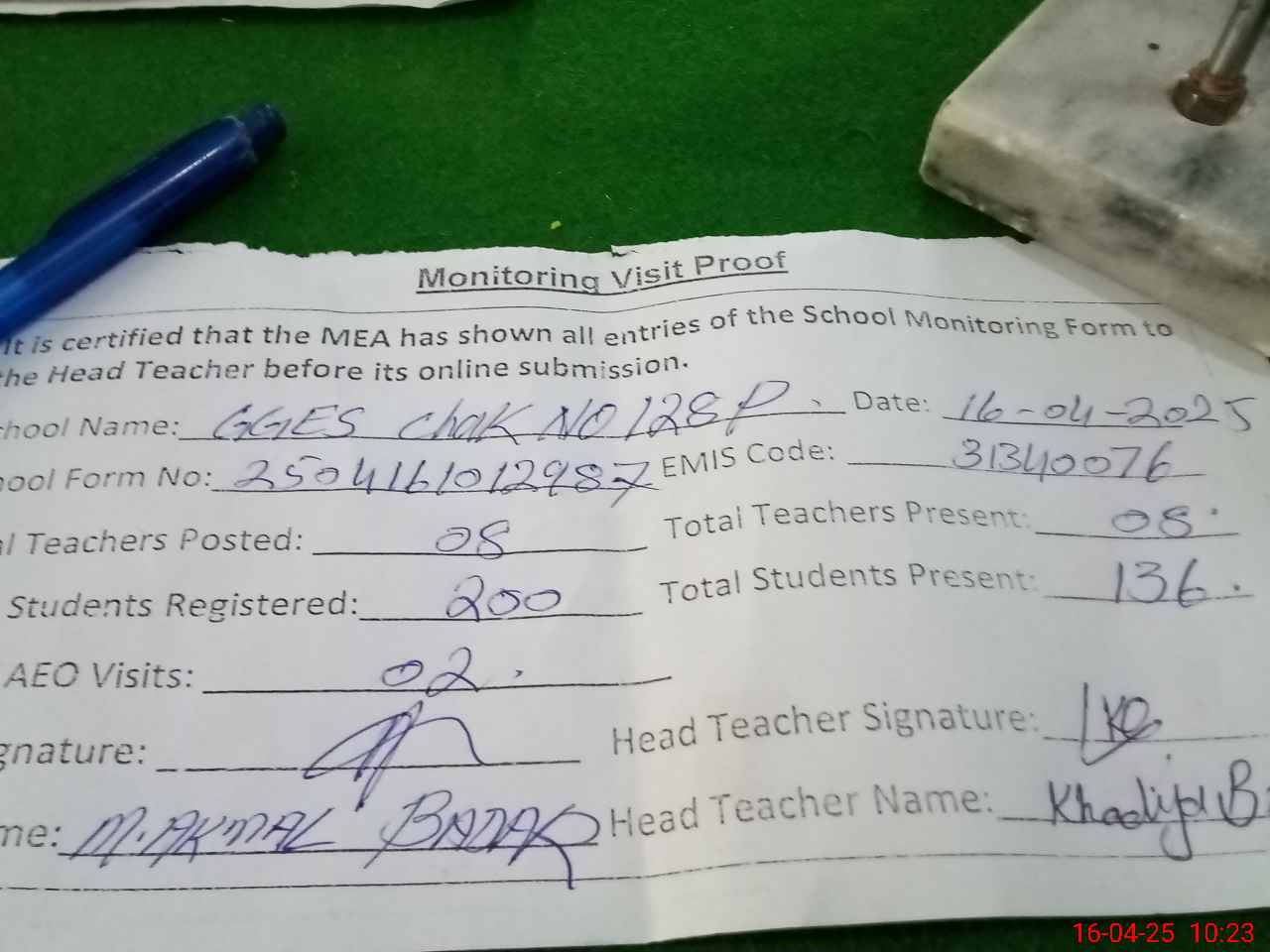 | EMIS Code: 31340076 | Name of School: GGES CHAK 128/P | |||