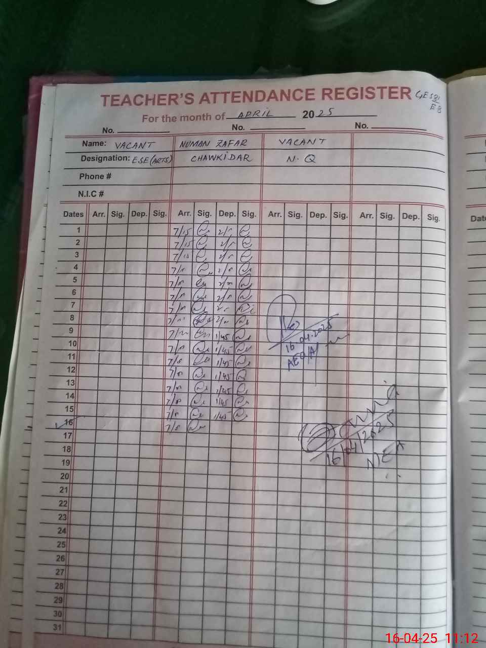 | 36**** | Sa**** Ul**** Sa**** | SSE | Contract | 0 | 0 | 0 | 0 | 0 | 0 | 0 | 0 | 0 | Exam Duty |