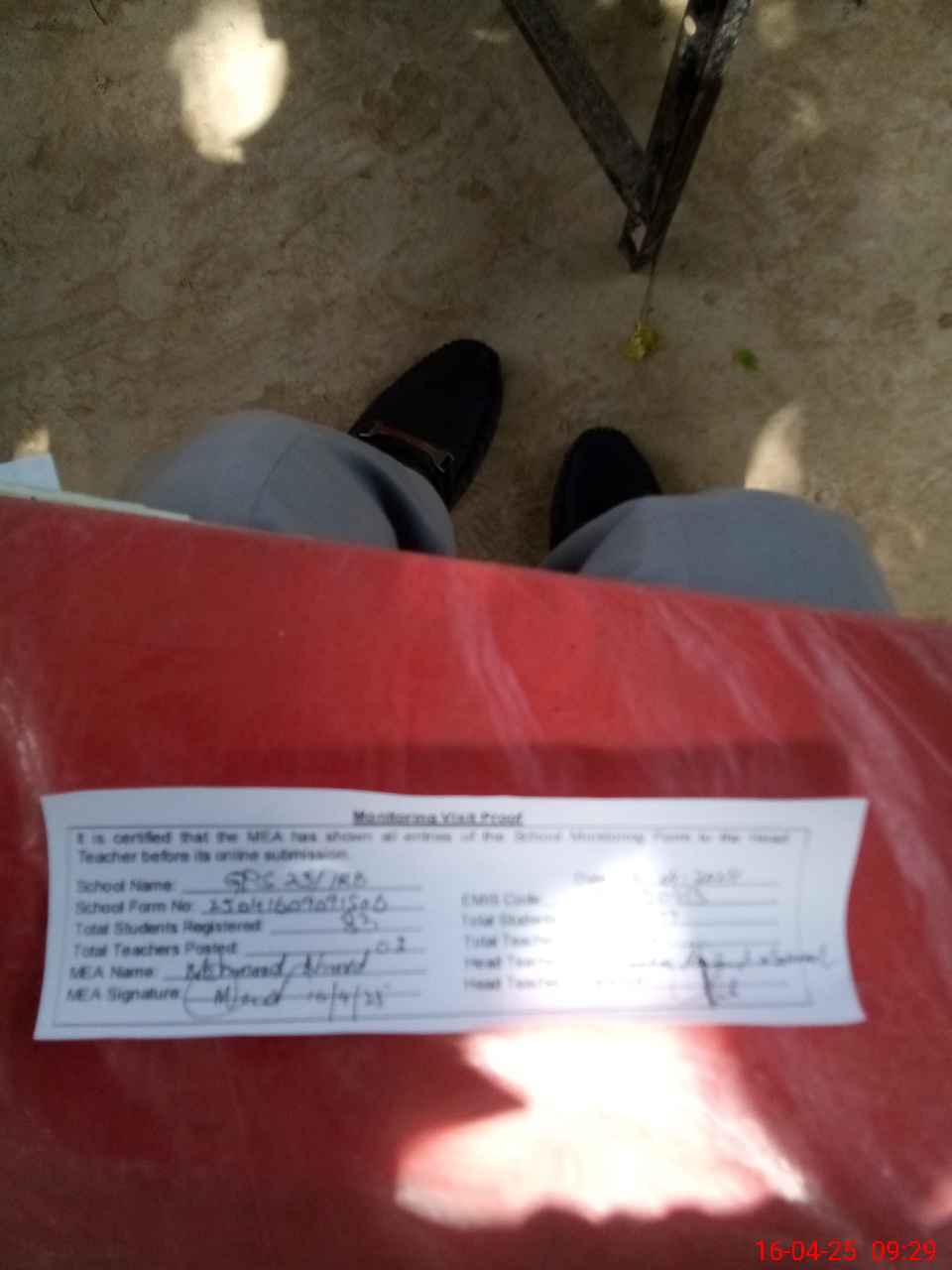 | Certified that this School was Inspected by the Undersigned MEA/DMO Today and the Information Stated Above is as Per Record. | |||||