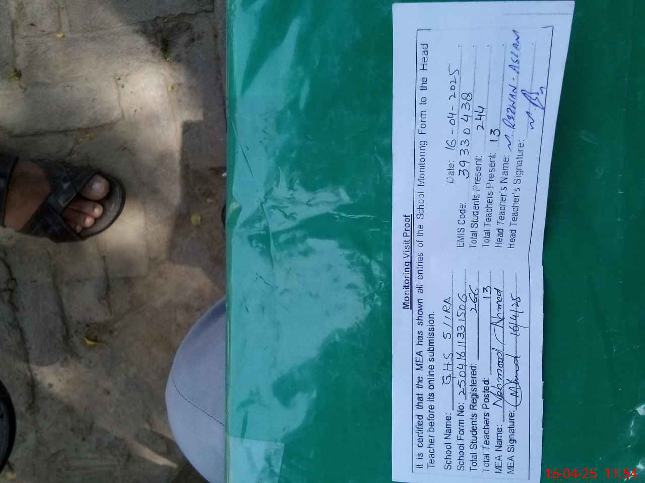 | EMIS Code: 39330438 | Name of School: GHS CHAK NO. 5/1-RA | |||