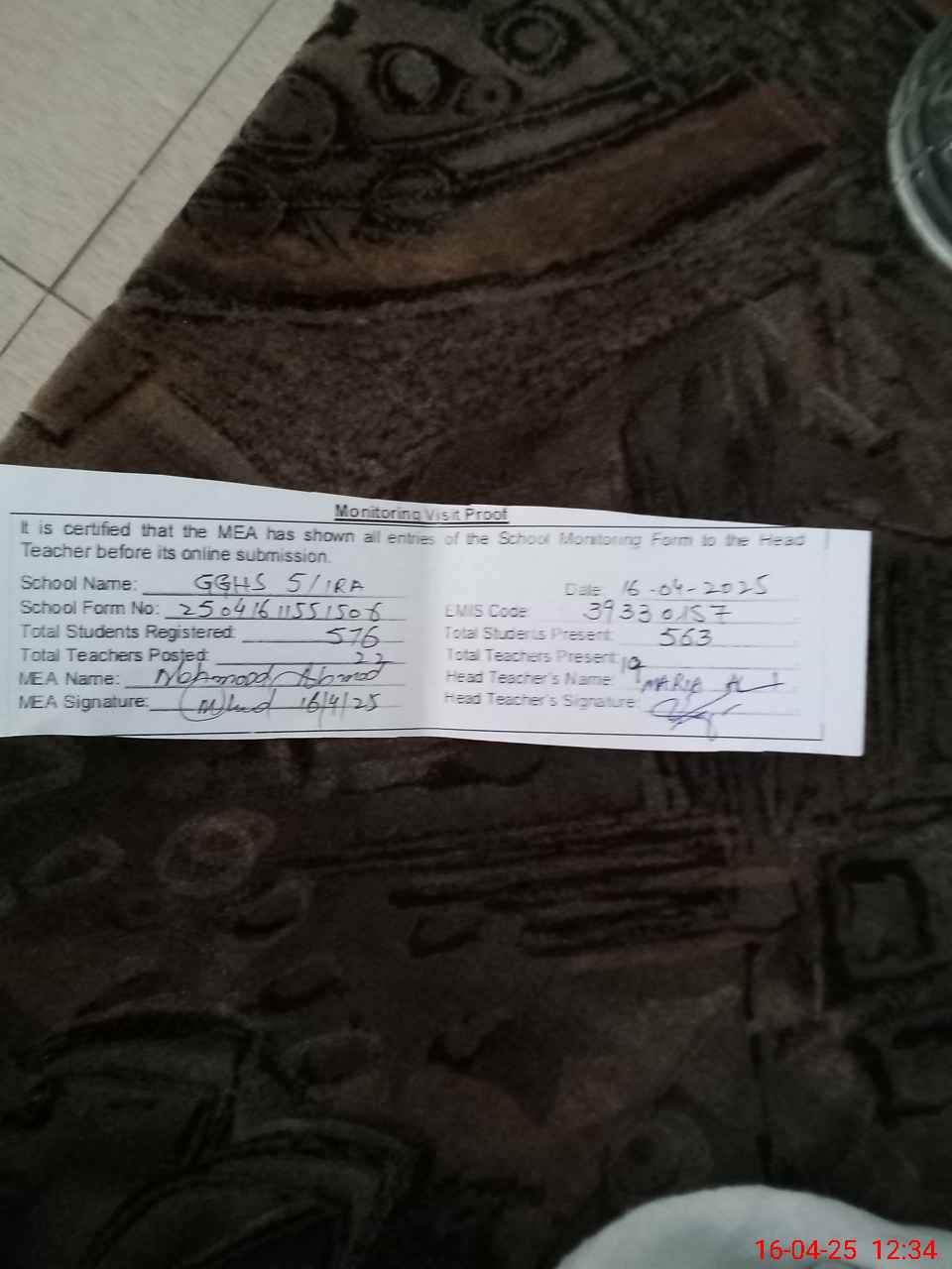 | EMIS Code: 39330157 | Name of School: GGHS CHAK NO. 5-1/RA | |||