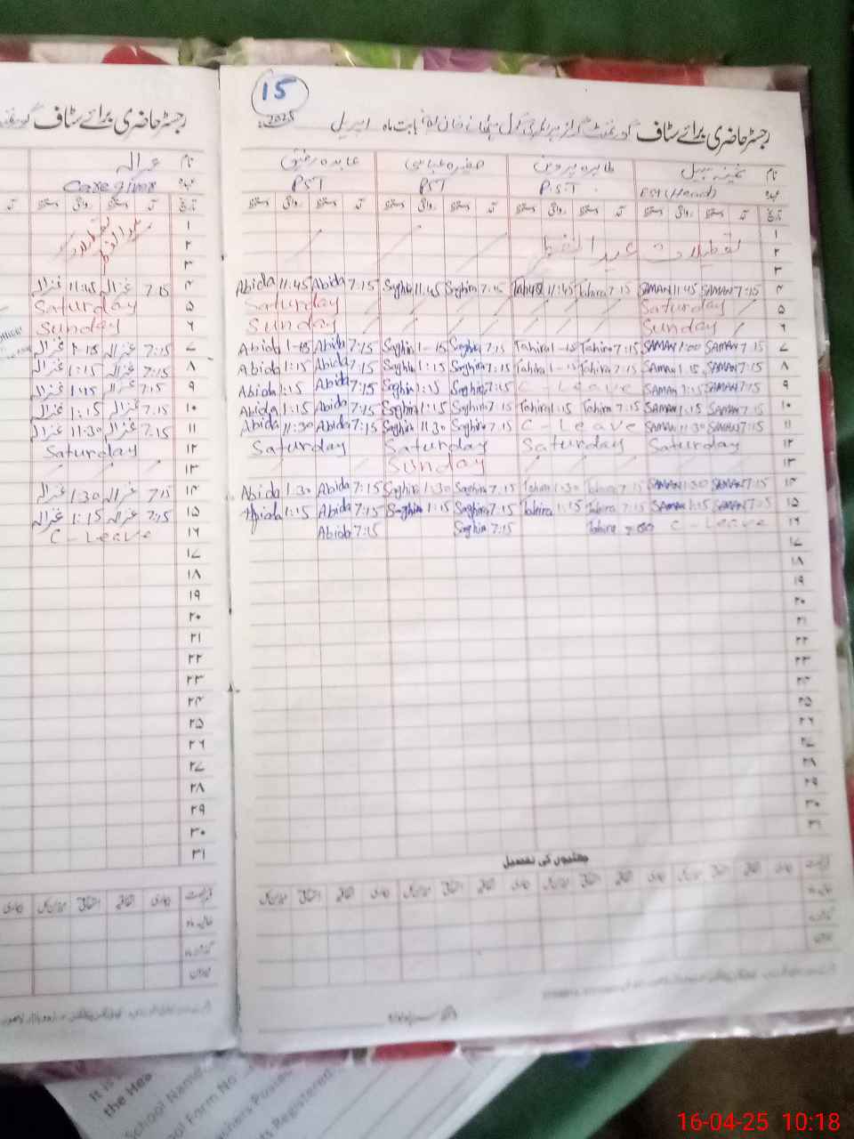 | Leave | Duty | Absent | Maternity | Medical | Ex- Pak |