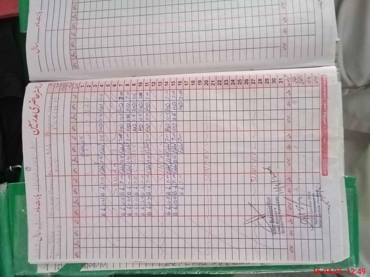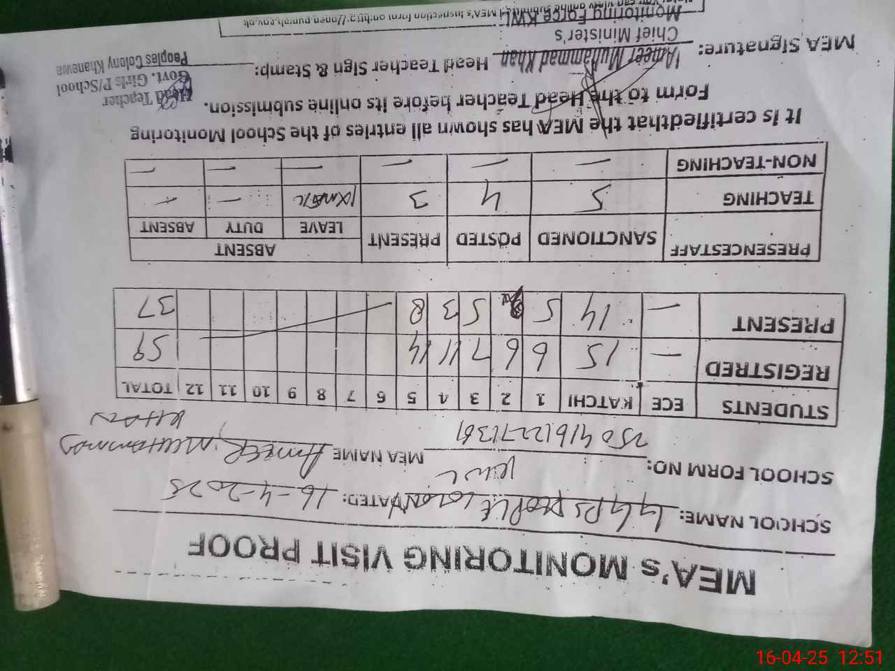 | Attendance Register | Head Teacher | MEA with School | Visit Proof |