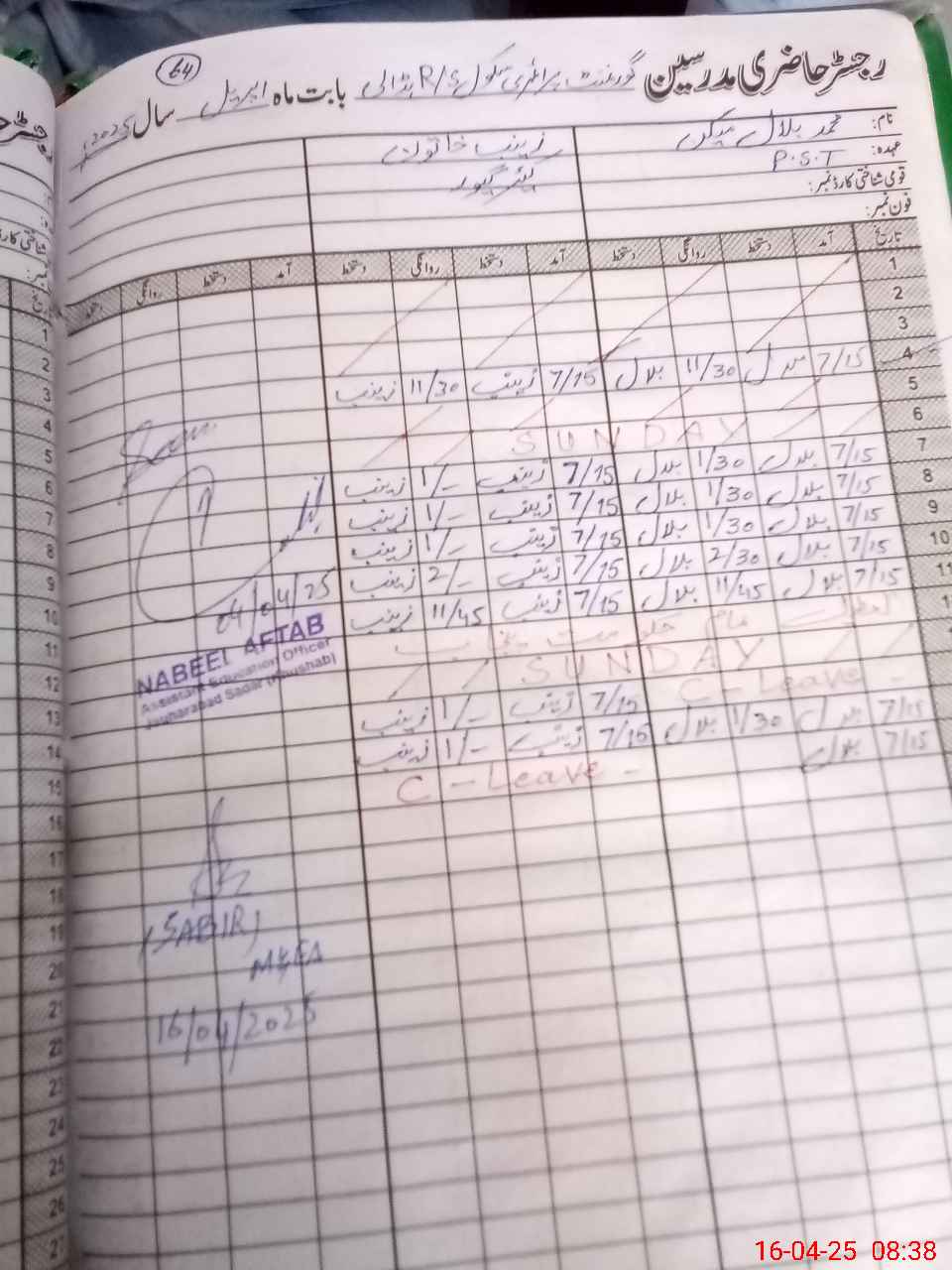 | Name: Mu**** Ri**** Designation: (School Headmaster's/Headmistress's) PST Phone/Cell Number: 03**** |